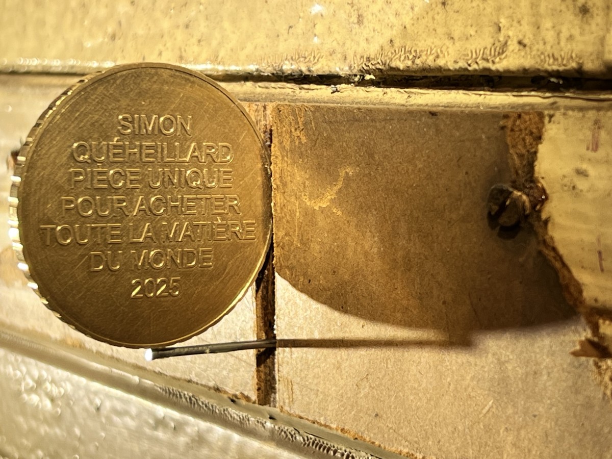 Pièce unique pour acheter toute la matière du monde Exposition L’espace d’une seconde, Galerie Mercier & Associés, Paris, 2025 Laiton, 4,5cm / 2mmm Laiton, 4,5cm / 2mm